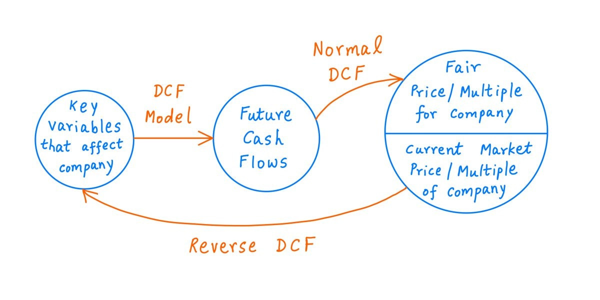 One of the best investment use-cases of Jacobi's famous maxim (thanks to Charlie Munger) - invert, always invert - is a Reverse DCF. While investors often boast of using a reverse DCF to understand what's baked in the price, not many understand the nuances behind this simplicity. This twitter thread explains how to use a reverse DCF to find out the implied reinvestment rate, or ROIC, or the discount rate. It also explains how to find an appropriate investment multiple for a business using a DCF. Grab a coffee and a notepad before you read this one.